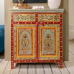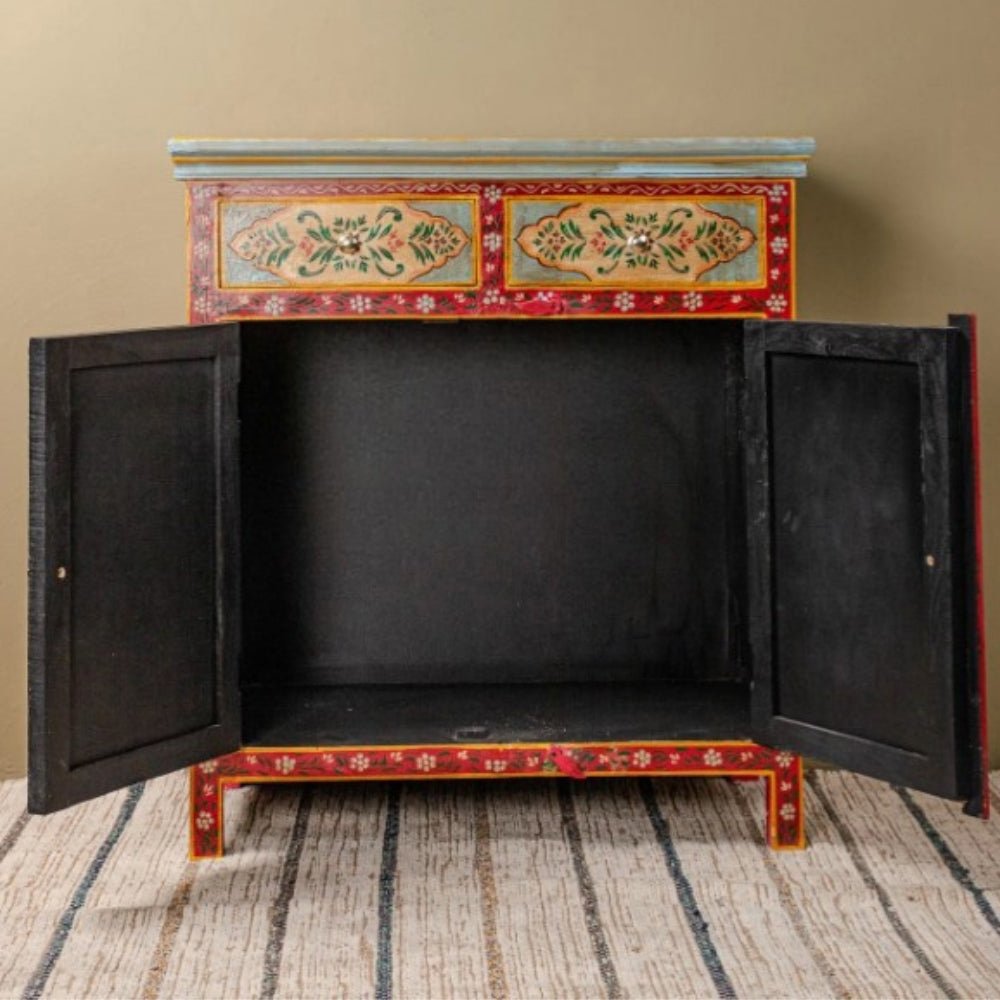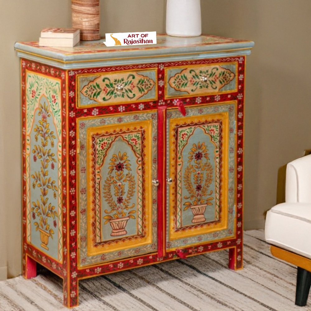 Rajasthani Hand-Painted Mango Wooden Cabinet 2 Door and 2 Drawer – Art Decor