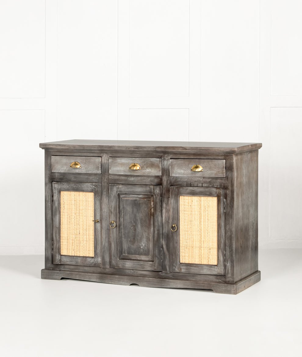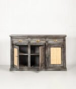 Rustic Grey Sheesham Wood Sideboard | Wooden Cane Panel Storage Unit