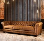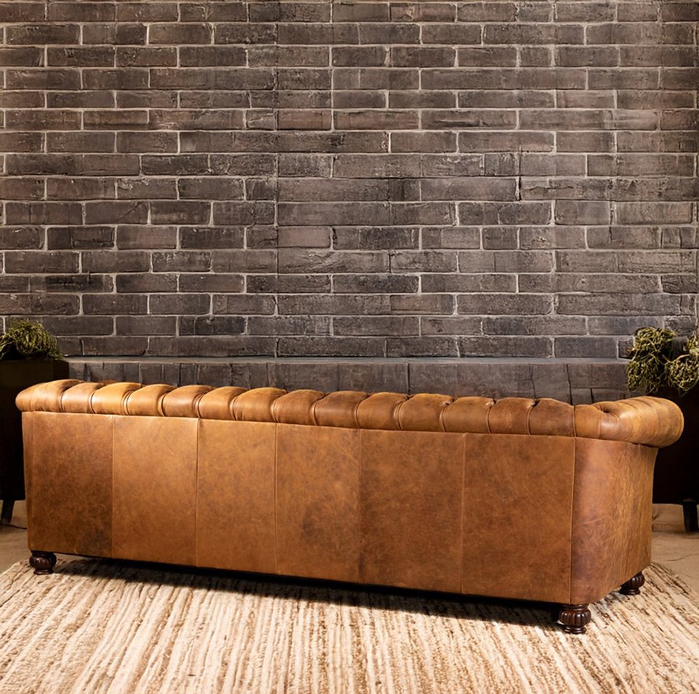 Saviero Vintage Leather Upholstered Chesterfield 4-Seater Sofa – Handcrafted