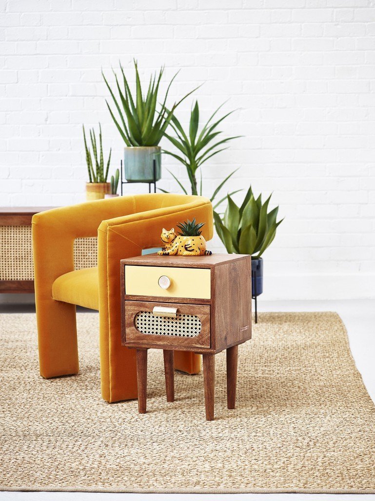 Material: Sheesham Wood, Cane, MDF, Engineered Wood.