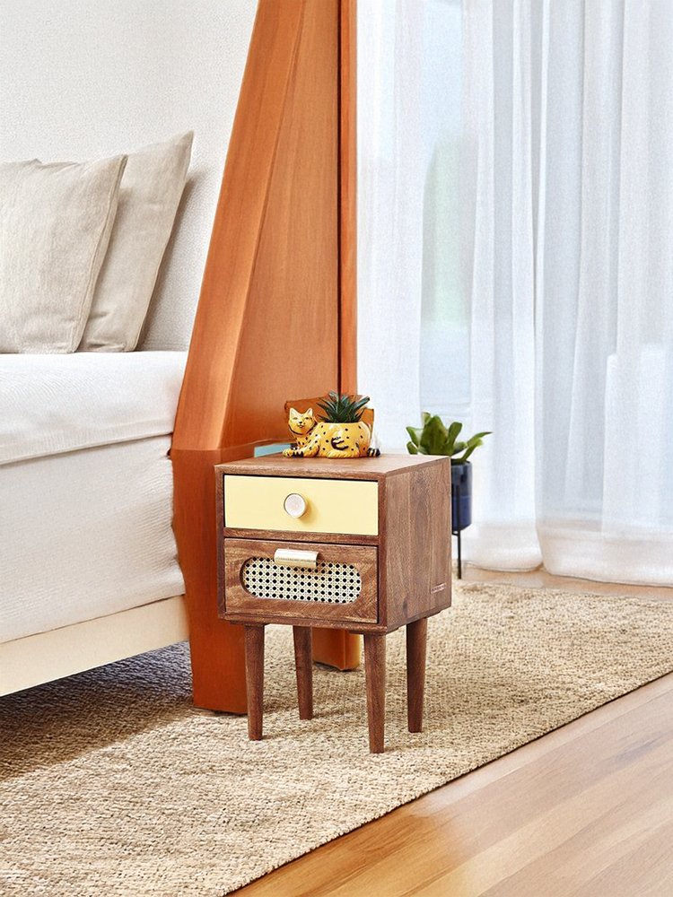 Designed for everyday convenience, it features smooth-glide drawers ideal for storing books, chargers, accessories, and nighttime essentials. The compact structure makes it perfect for bedrooms, guest rooms, or hotel interiors, while the sturdy wooden legs ensure stability and long-term use.