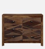 Add timeless warmth and functional elegance to your interiors with this Sheesham Wood Chest of Drawers featuring a Rustic Teak Finish. Expertly crafted from premium solid sheesham wood, this 6-drawer chest showcases a striking geometric carved pattern that highlights the natural grain and rich tonal depth of teak polish.