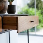 Built on a sturdy metal base, this wood and metal console table offers excellent stability and durability. Perfect for entryways, hallways, living rooms, or offices, it complements modern, industrial, and minimalist interiors effortlessly.