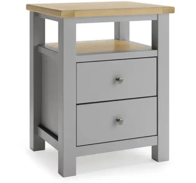 Solid Wood 2 Drawer Bedside Table | Grey Nightstand