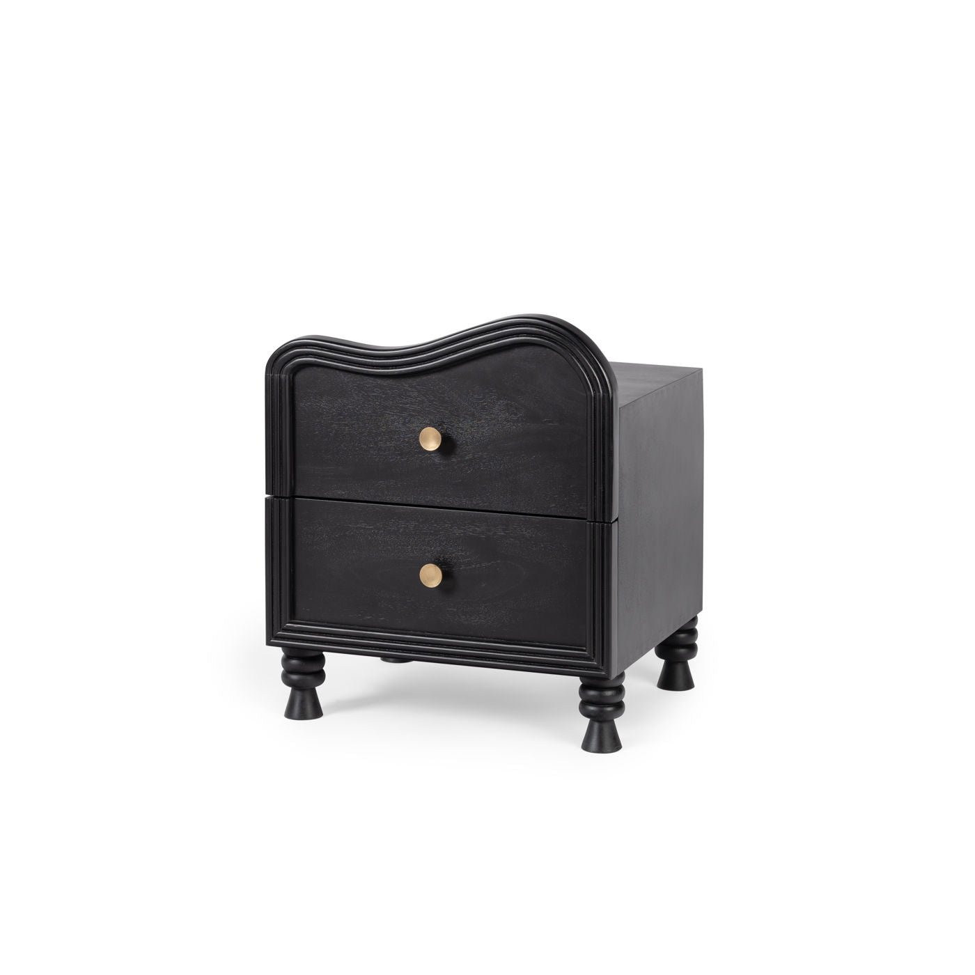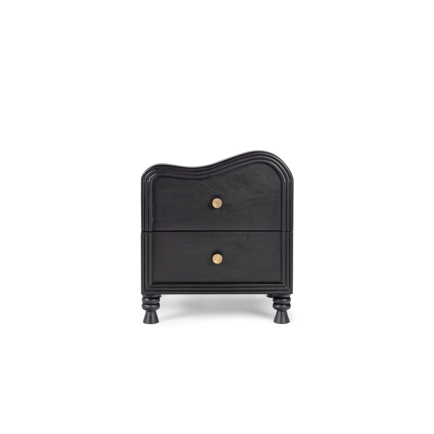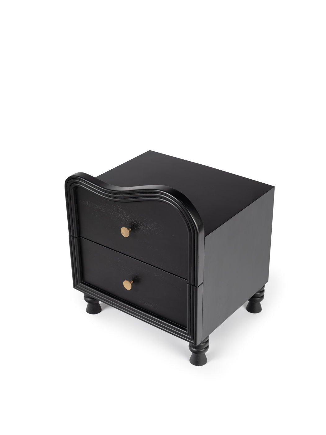 Solid Wood Bedside Table – Black Curved | Modern Nightstand