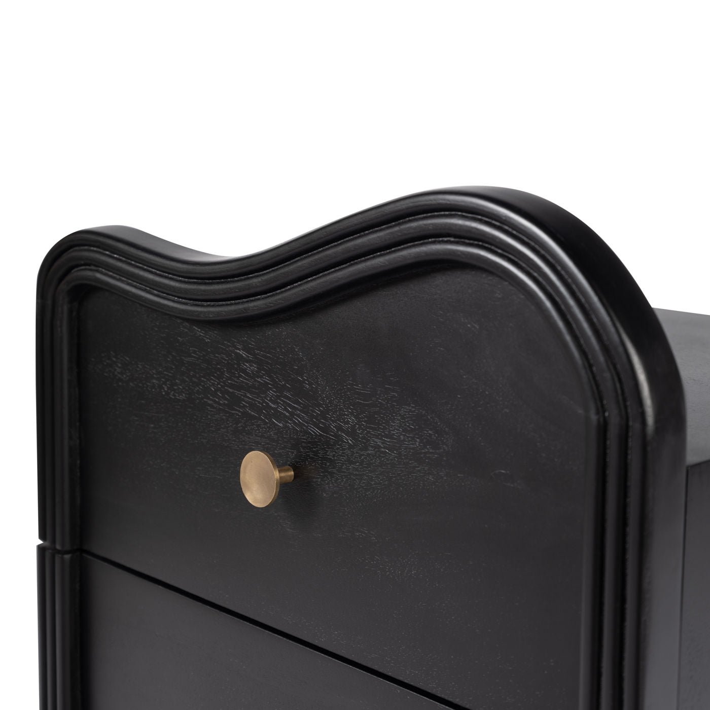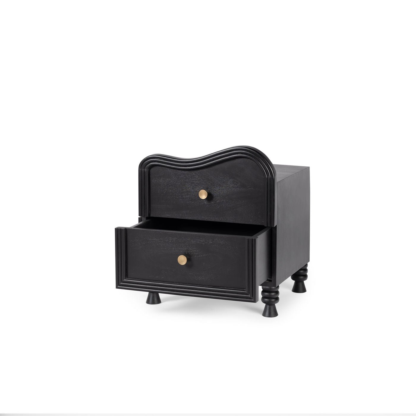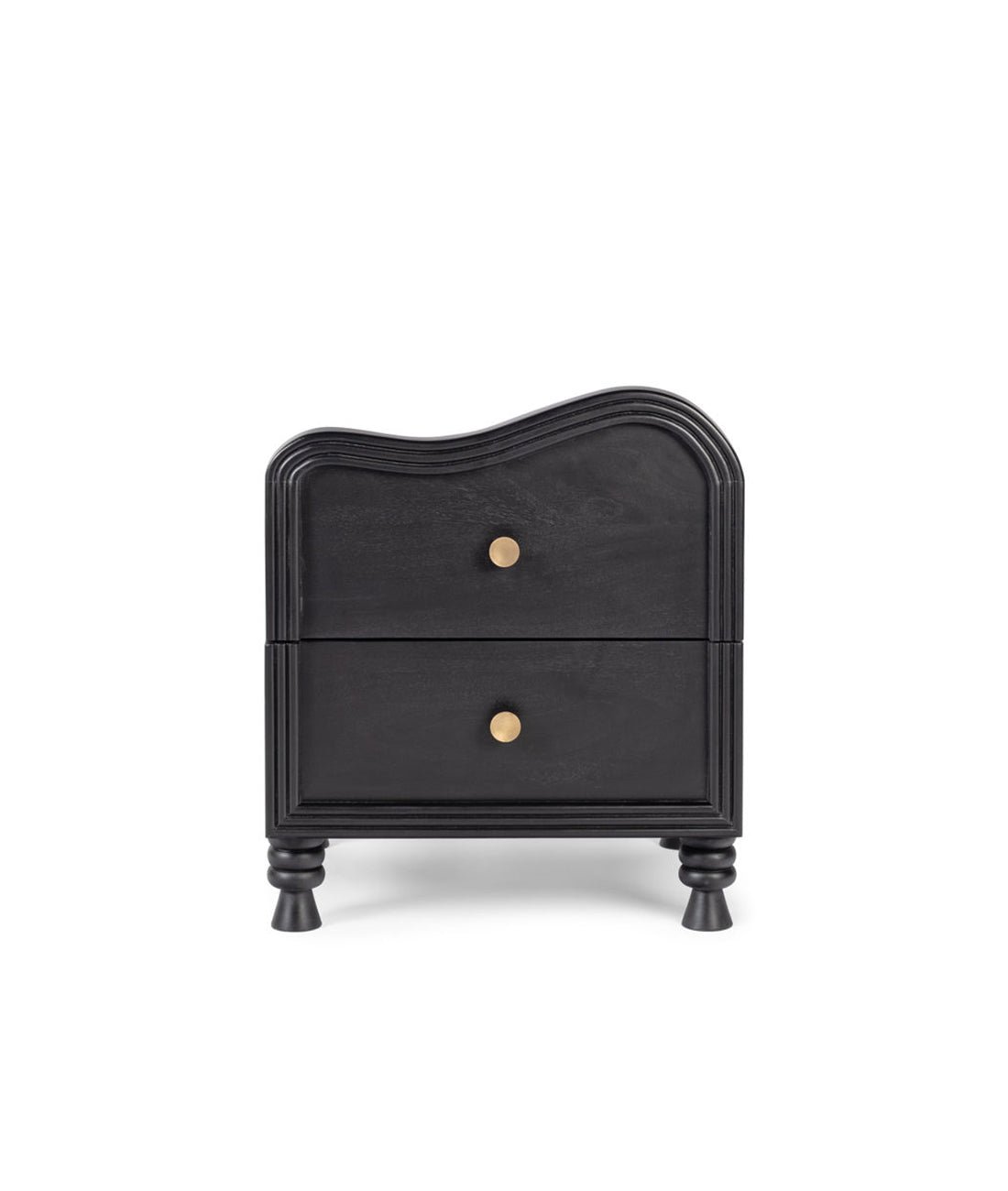 Solid Wood Bedside Table – Black Curved | Modern Nightstand