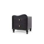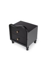 Crafted from premium-quality wood and finished in a rich matte black tone, this bedside table offers two spacious drawers with stylish round metal knobs, ideal for storing books, gadgets, and nighttime essentials. The smooth edges, sturdy turned legs, and refined finish make it a statement piece for modern, contemporary, luxury, and minimalist interiors.