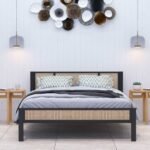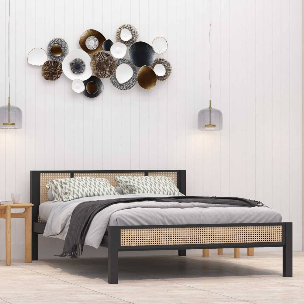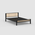 Solid Wood Cane Bed – Black Finish | Modern Rattan Bed Frame