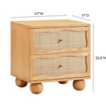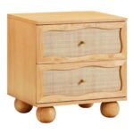 Bring warmth and functionality to your bedroom with this solid wood cane bedside table featuring two smooth drawers. Finished in a natural tone with elegant cane detailing, it offers durable construction, ample storage, and a timeless look that suits modern, boho, and contemporary interiors.