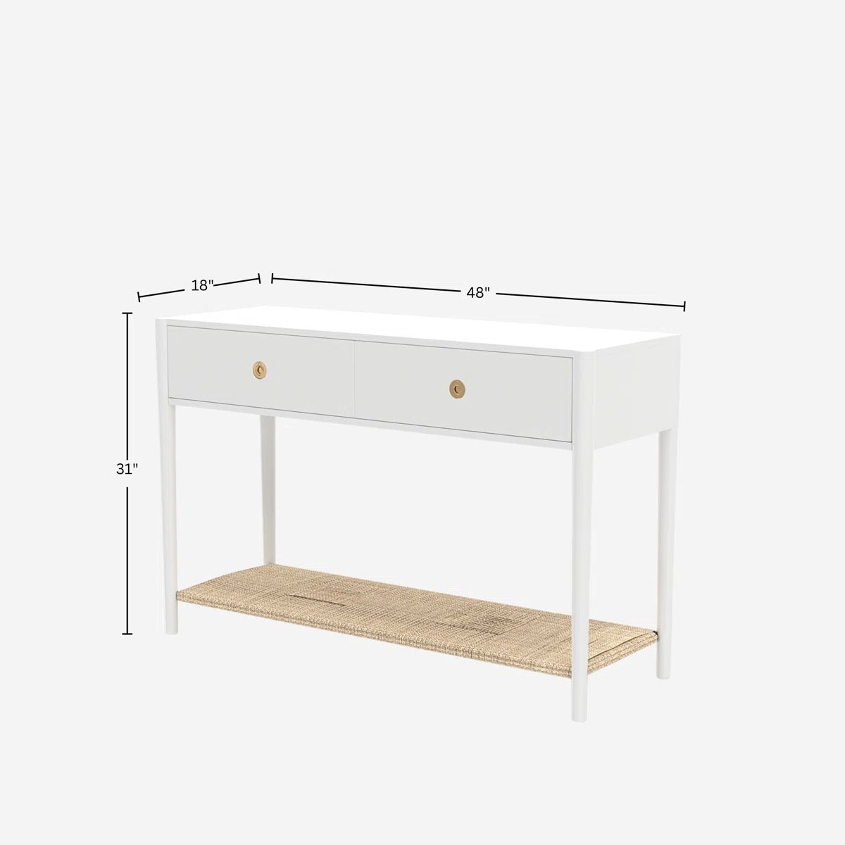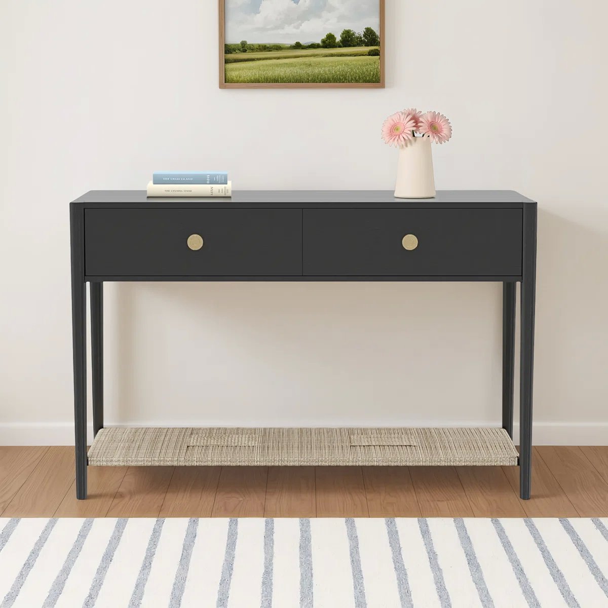 Solid Wood Cane Console Table 2 Drawers Cane Shelf – Black Finish