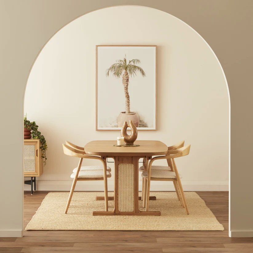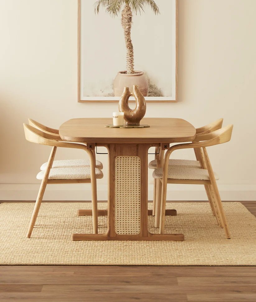 Solid Wood Cane Rectangle Dining Table 4 Seater – Natural Finish