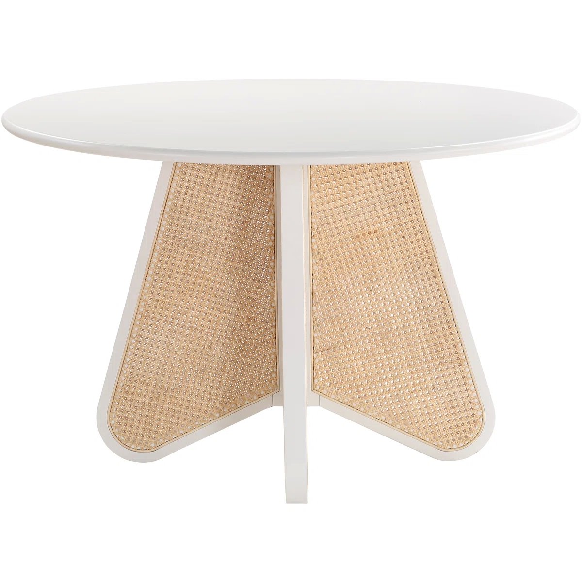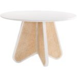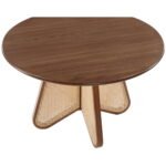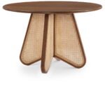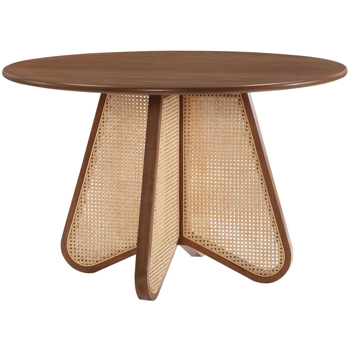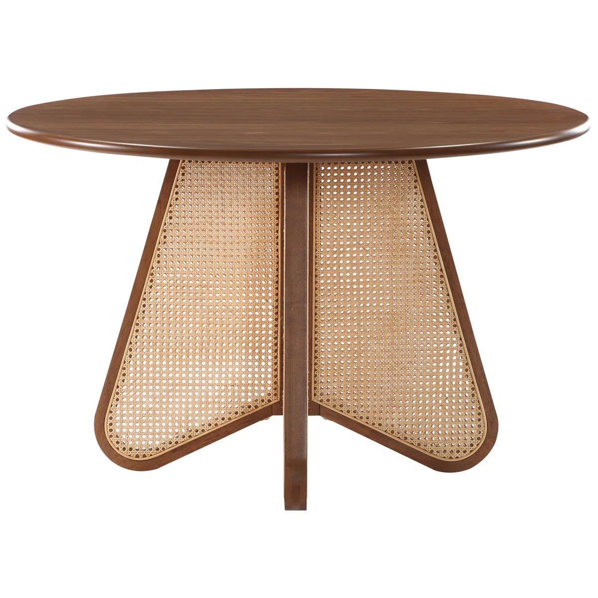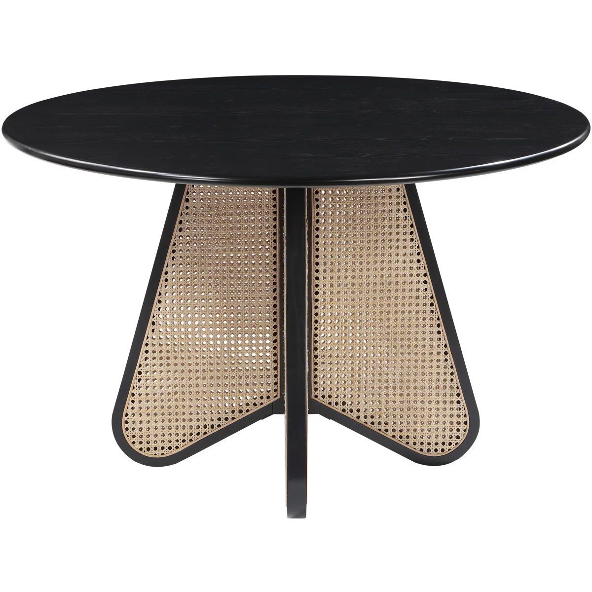 Solid Wood Round Cane Dining Table – Black Finish Wooden Dining Table for Home
