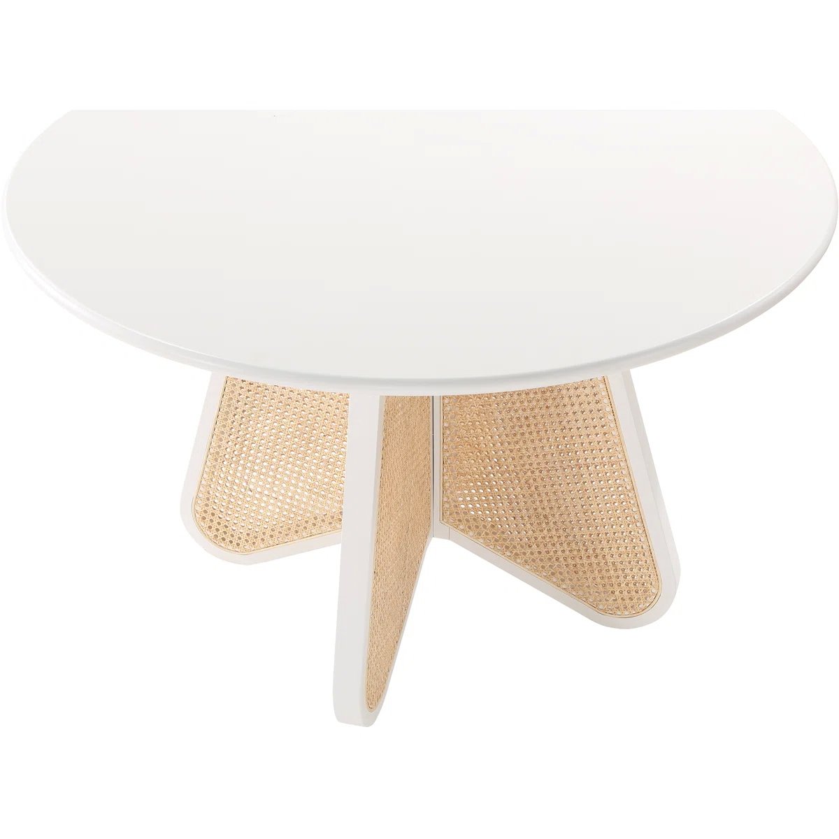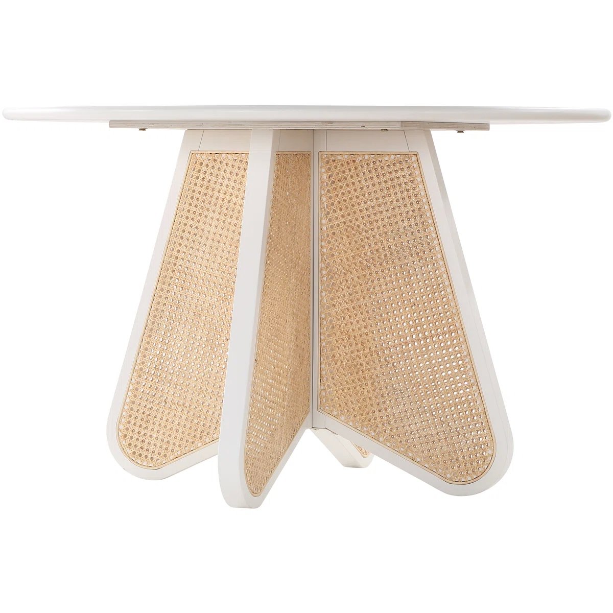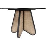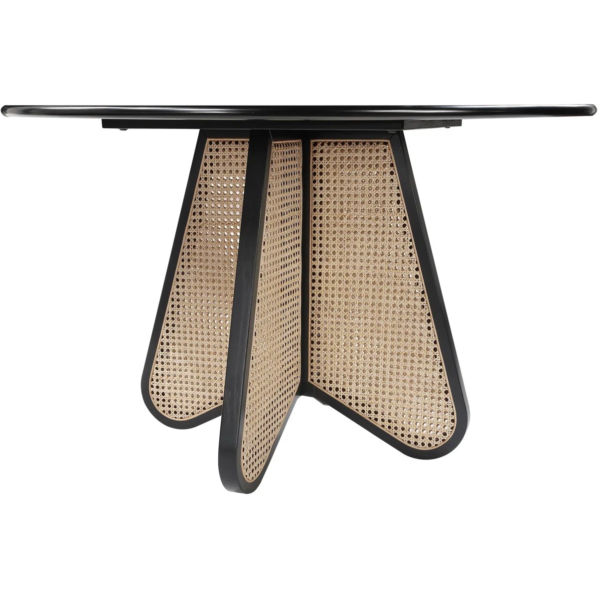 The rich black finish enhances the natural wood texture while adding a bold and sophisticated look to your interior. The cane detailing provides a handcrafted touch and breathable design element, blending traditional craftsmanship with modern style. Its round shape makes it perfect for compact and contemporary dining spaces, encouraging comfortable seating and easy interaction.