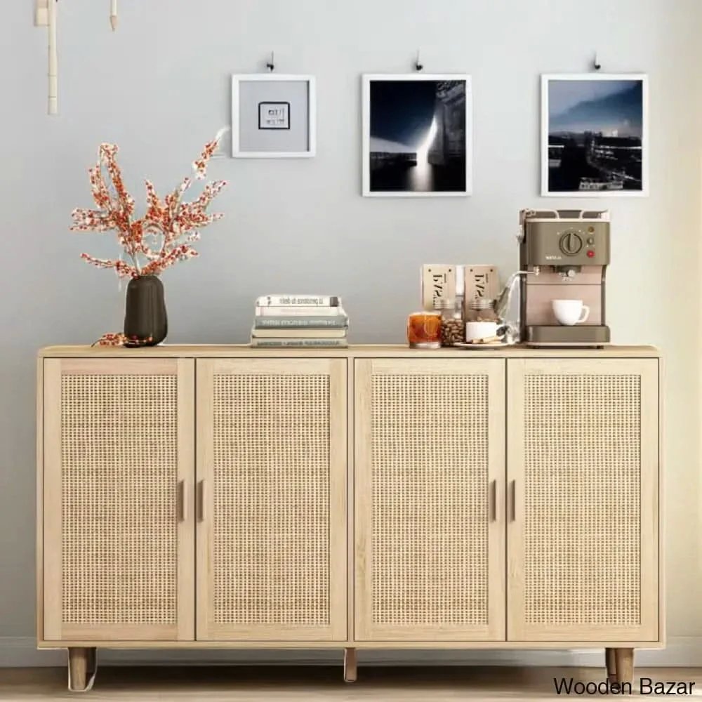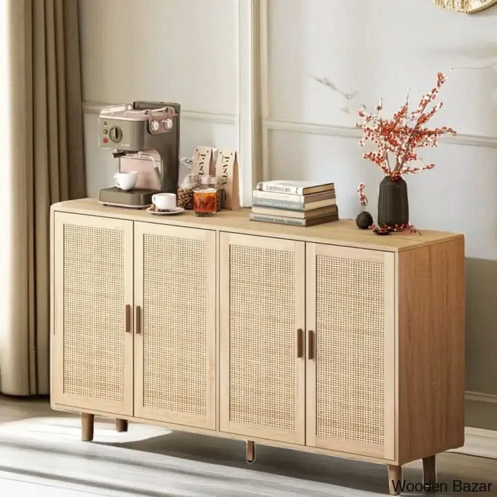 Solid Wood Cane Sideboard – Natural Finish