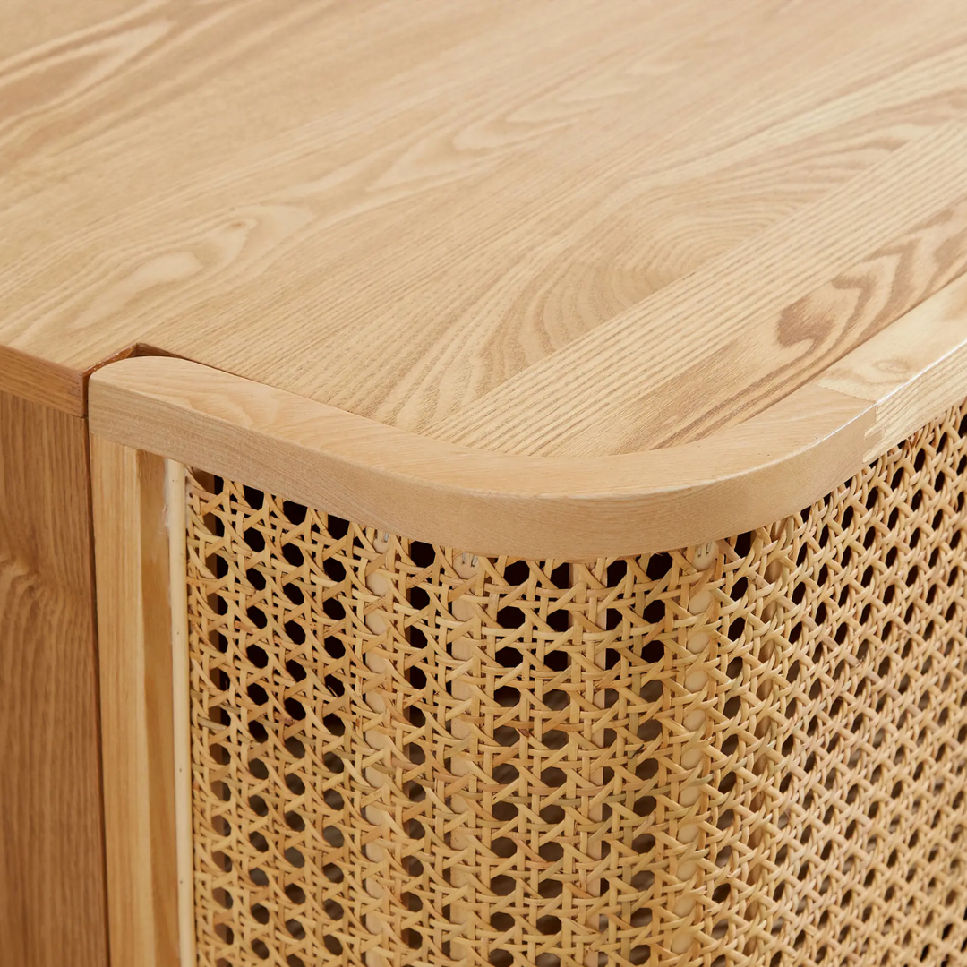 Solid Wood Cane TV Unit – Natural Finish Console