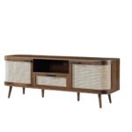 Acacia Wood Rattan TV Unit – Natural Finish Solid Wood Entertainment Console