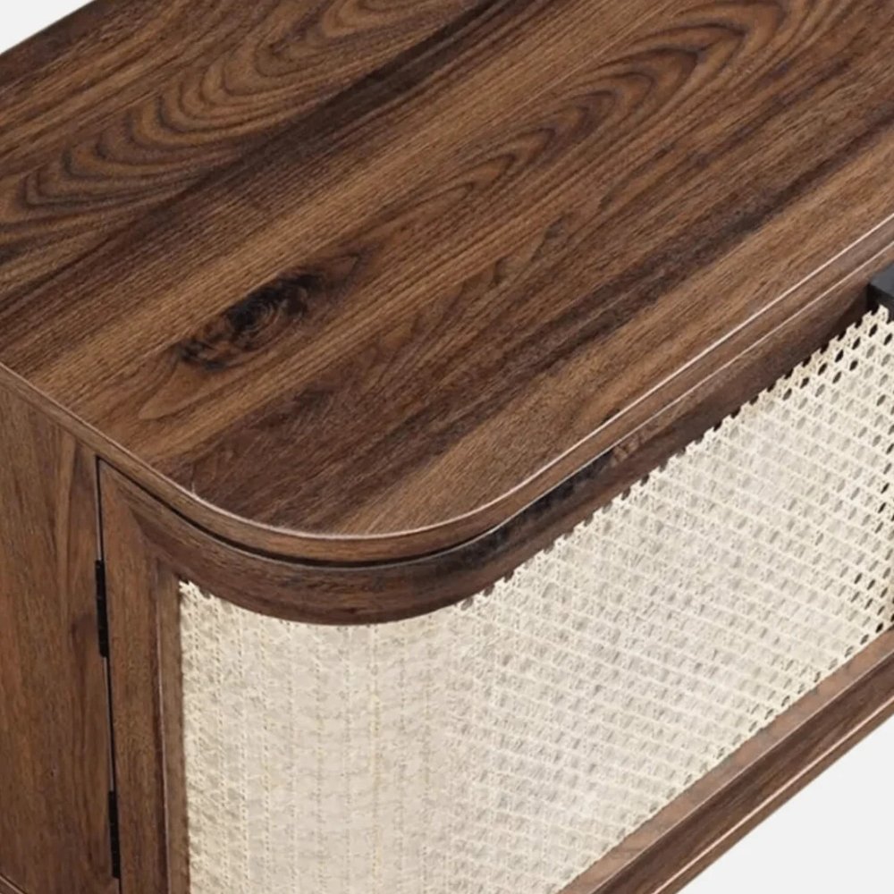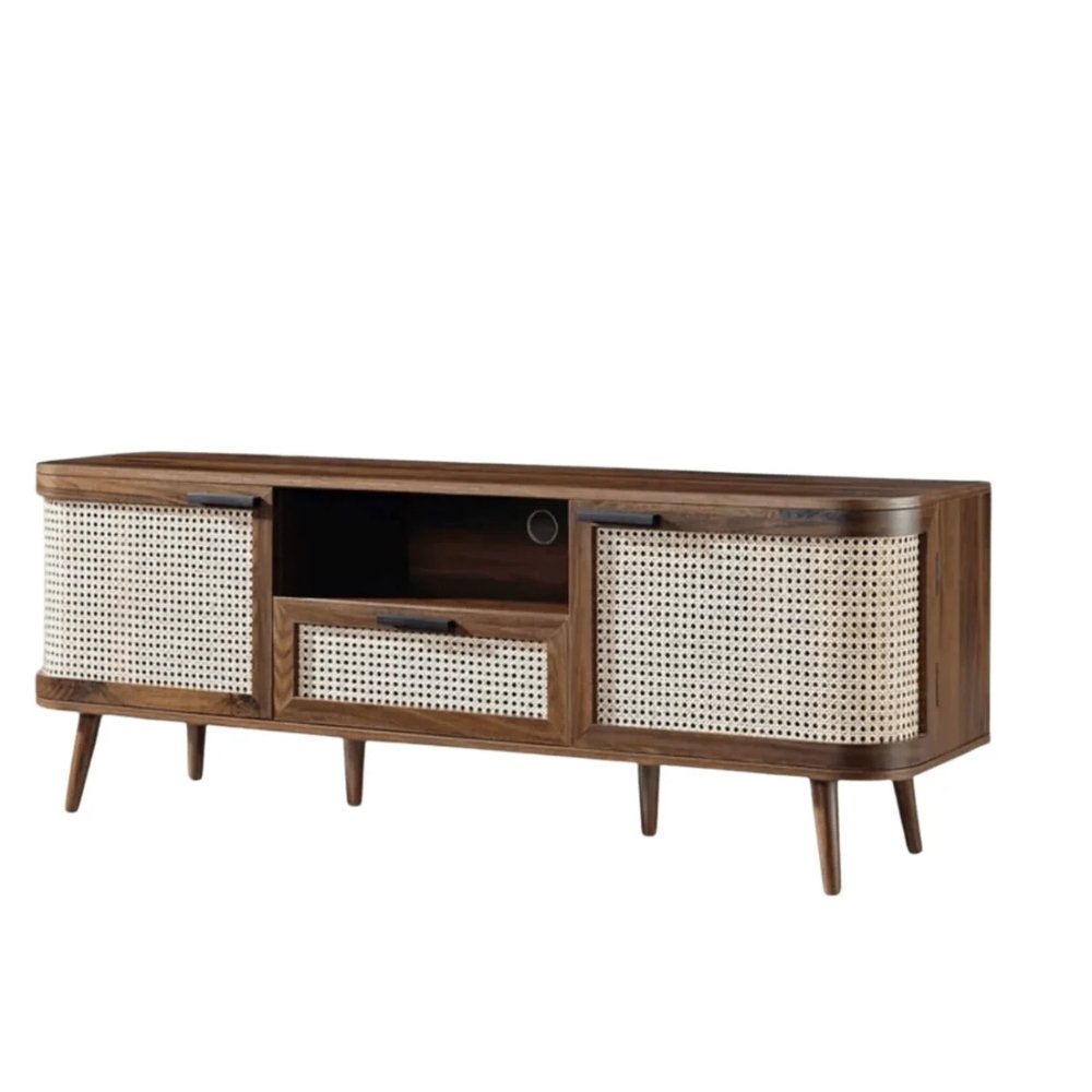 Solid Wood Cane TV Unit – Walnut Finish Entertainment Console