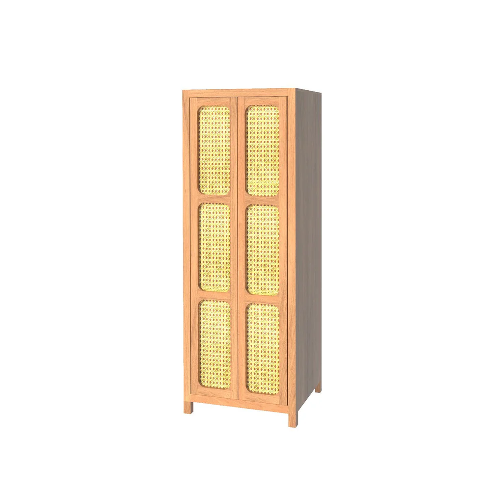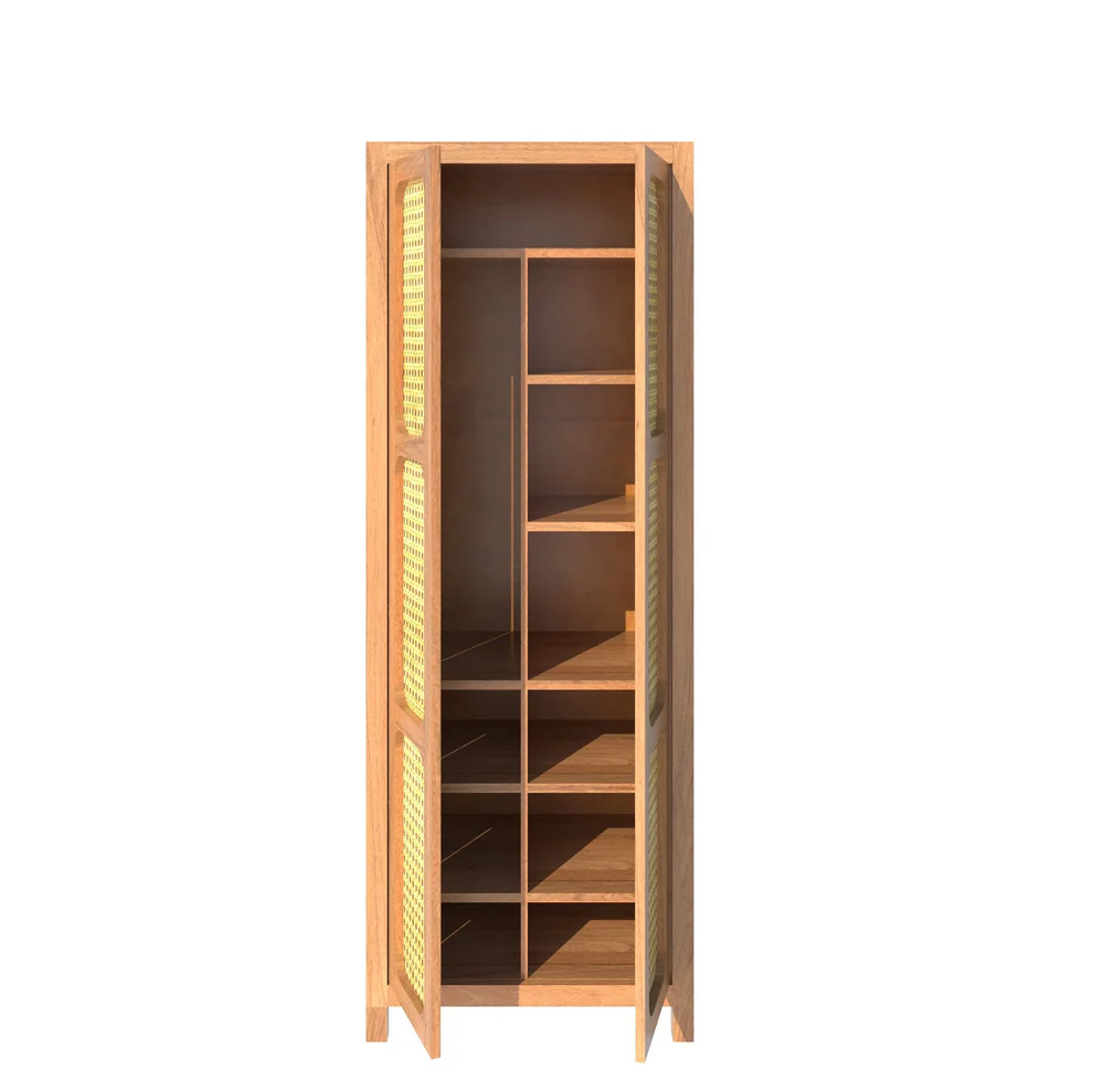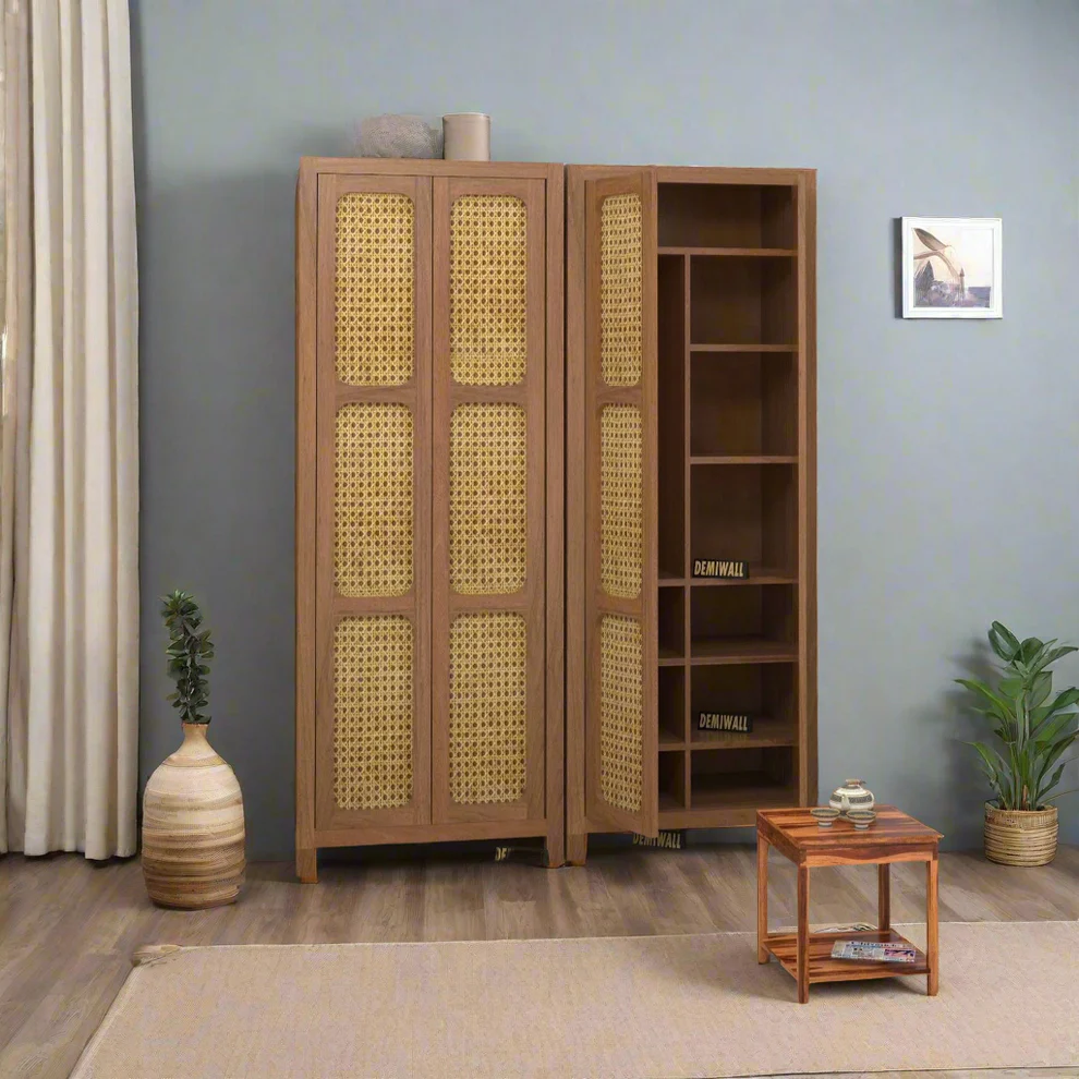 Solid Wood Cane Wardrobe 2 Door – Natural Teak Finish Wooden Wardrobe for Bedroom
