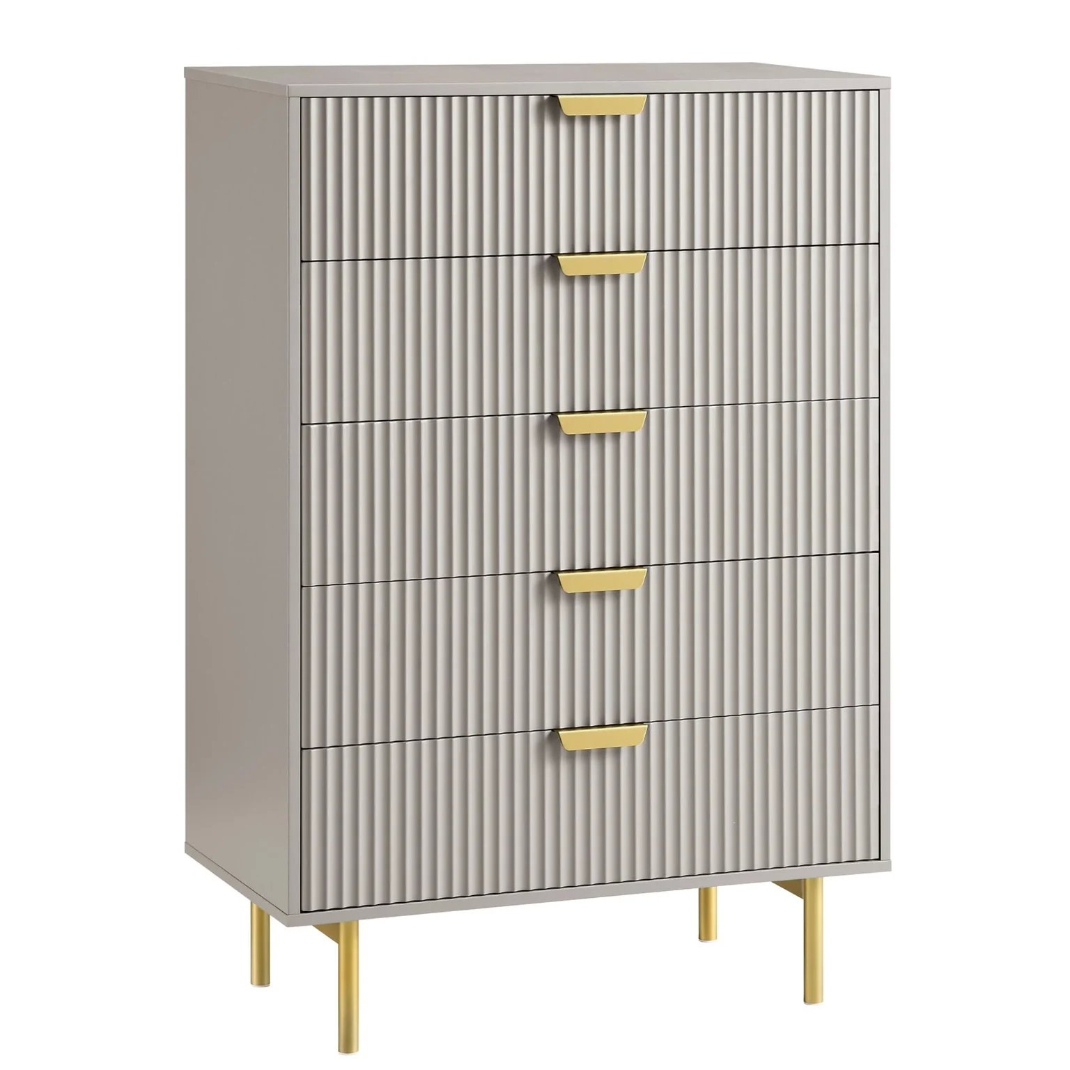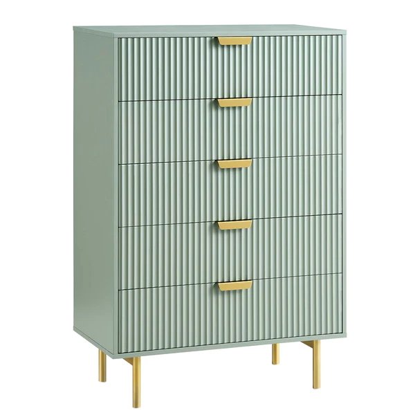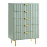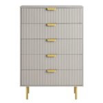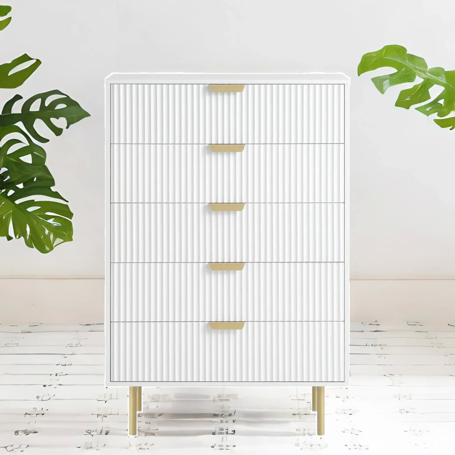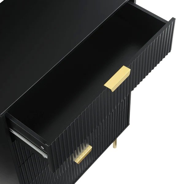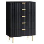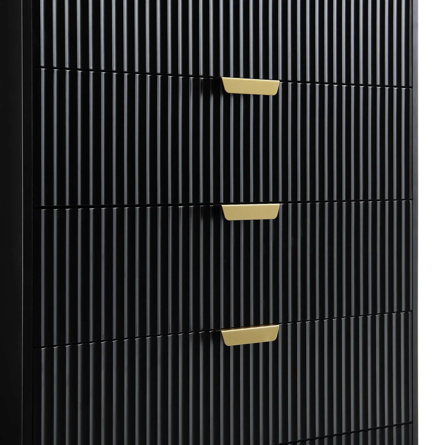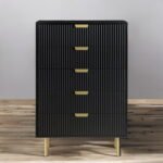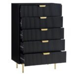 The vertical fluted drawer fronts add texture and depth, while the matte black finish paired with subtle metallic handles creates a striking, luxury appeal. Five spacious drawers offer ample storage for clothes, accessories, documents, or essentials, making it ideal for bedrooms, living rooms, or designer spaces.