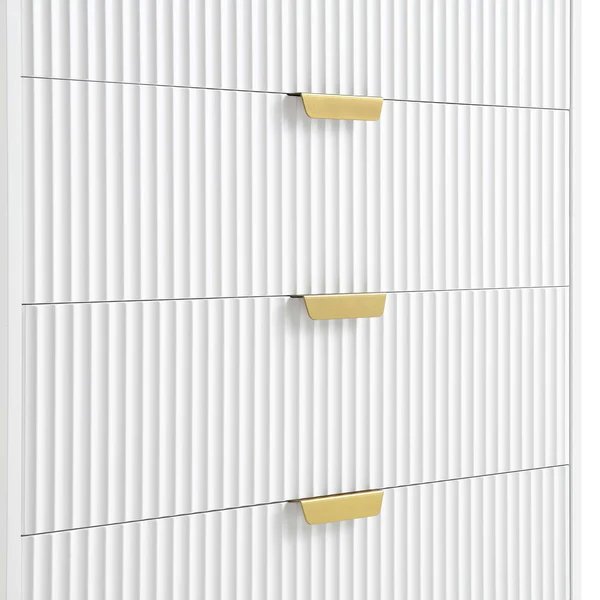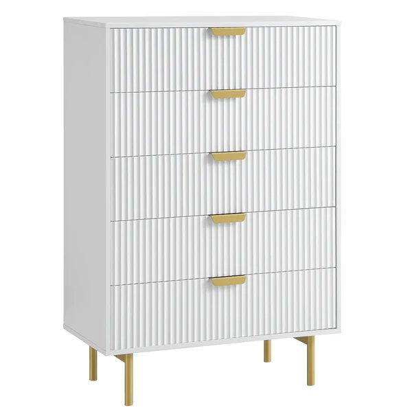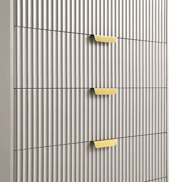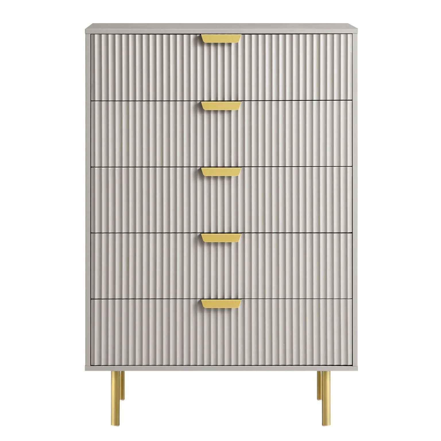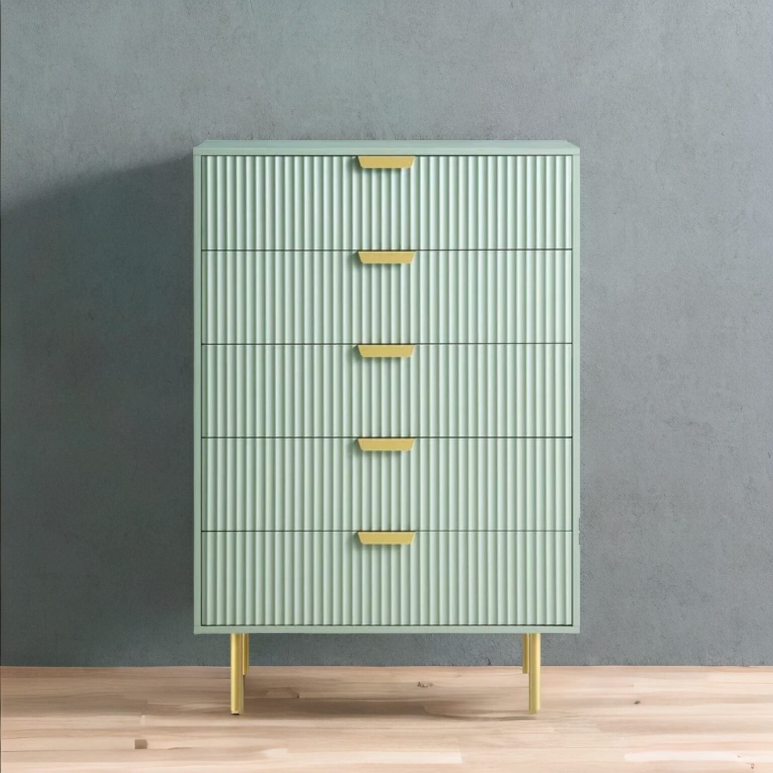 The vertical fluted drawer fronts add texture and depth, while the matte black finish paired with subtle metallic handles creates a striking, luxury appeal. Five spacious drawers offer ample storage for clothes, accessories, documents, or essentials, making it ideal for bedrooms, living rooms, or designer spaces.
