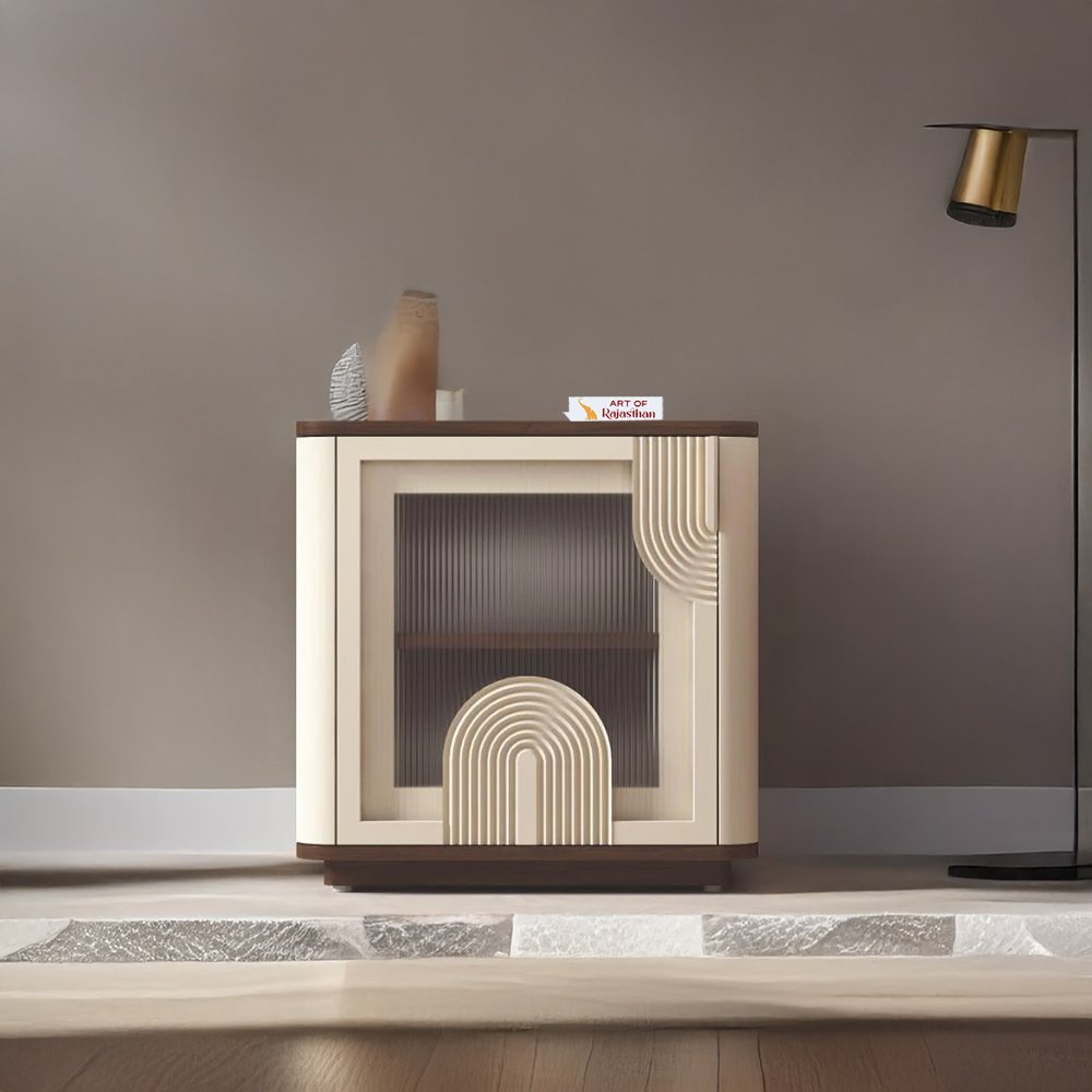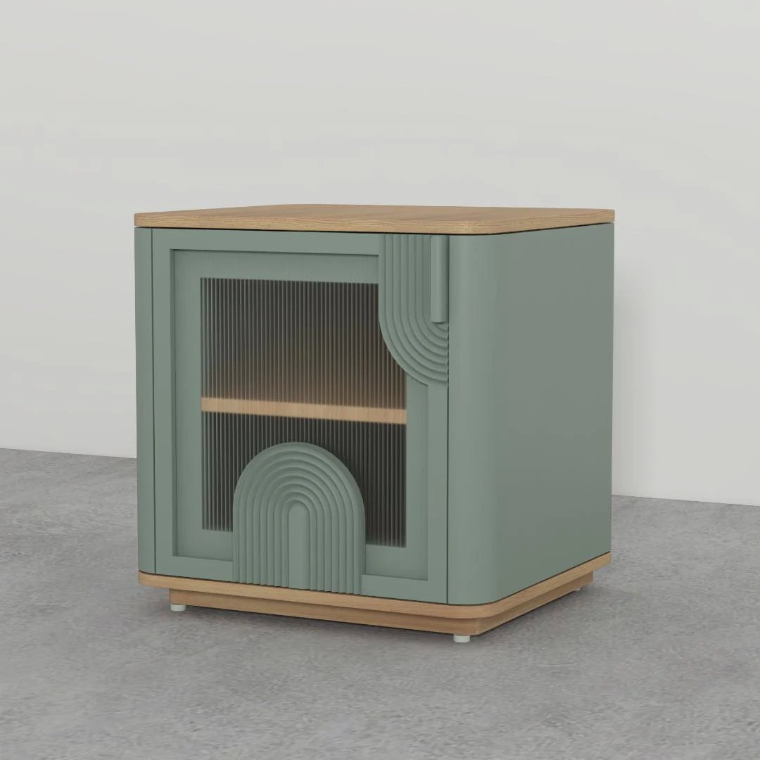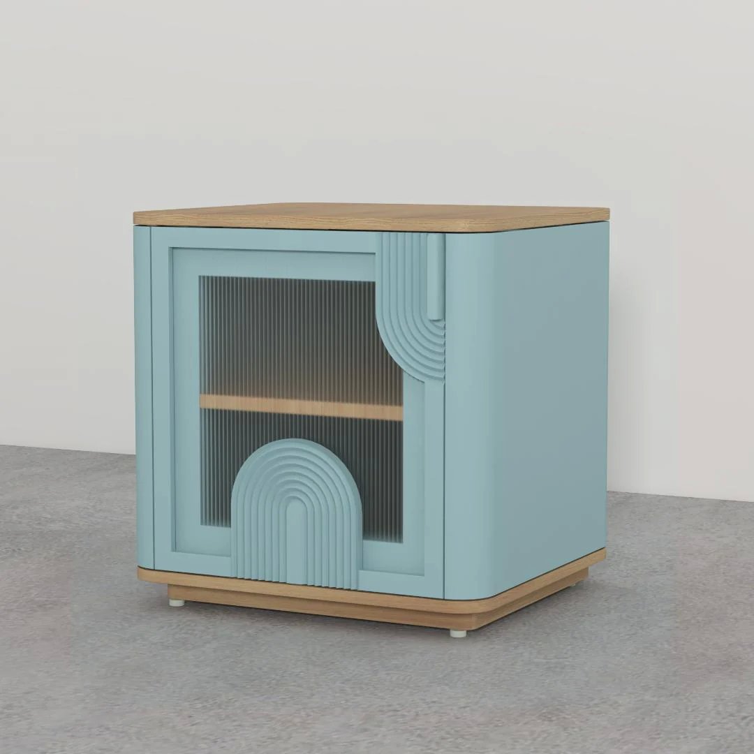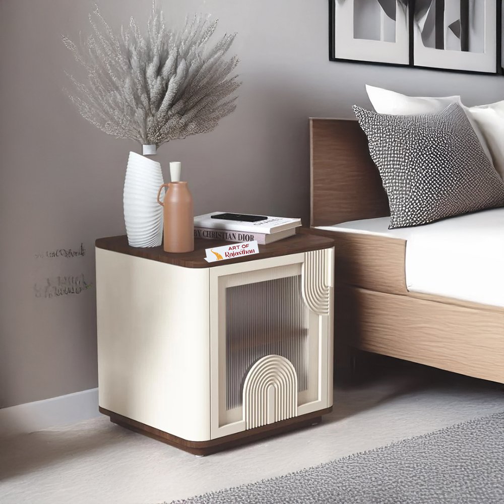 Solid Wood Fluted Glass 1 Door Bedside Table | Wooden Nightstand