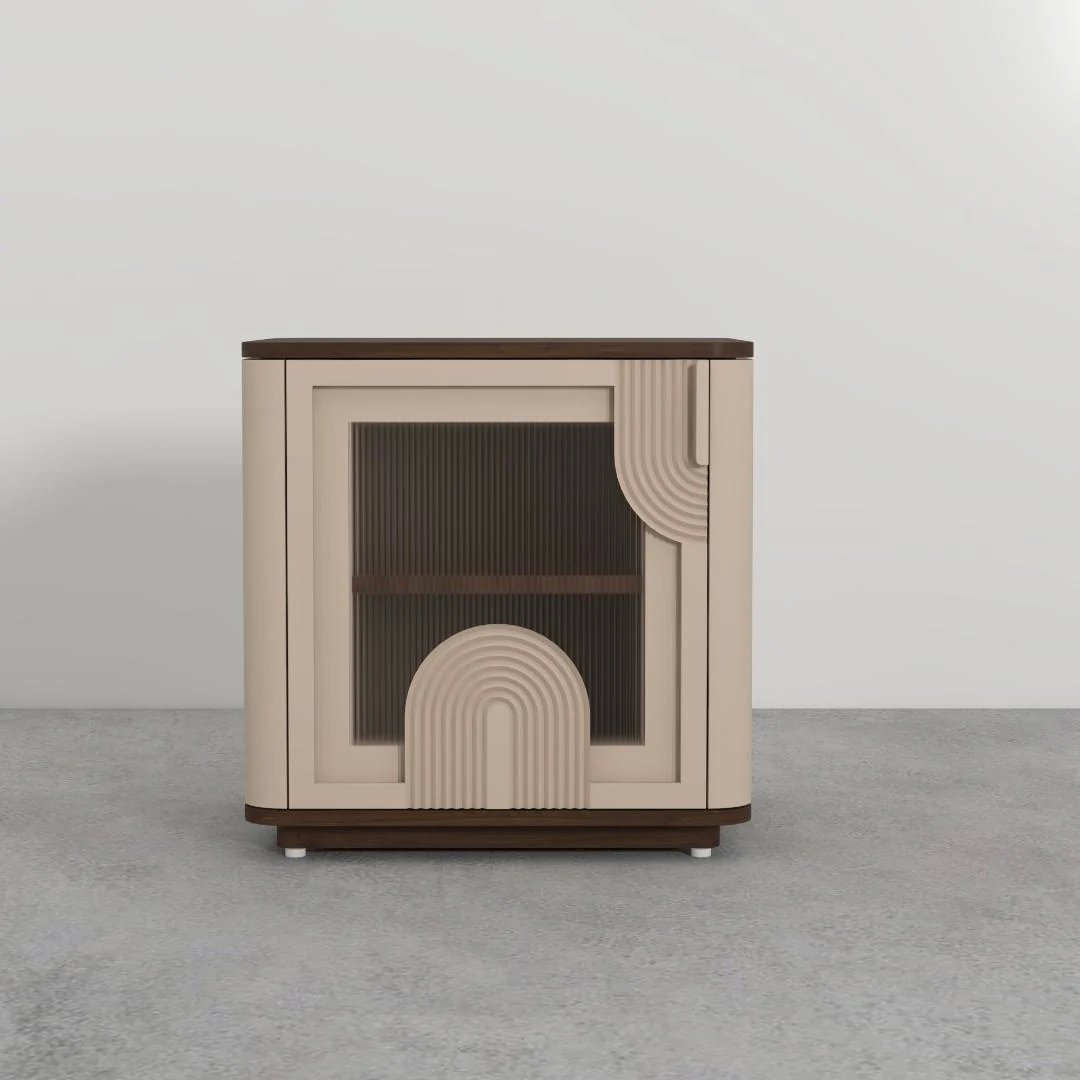The sturdy wooden frame ensures durability, while the fluted glass panel adds texture and visual depth without fully revealing the contents inside. The spacious interior compartment provides ample storage for books, accessories, and nighttime essentials, keeping your space organized and clutter-free.