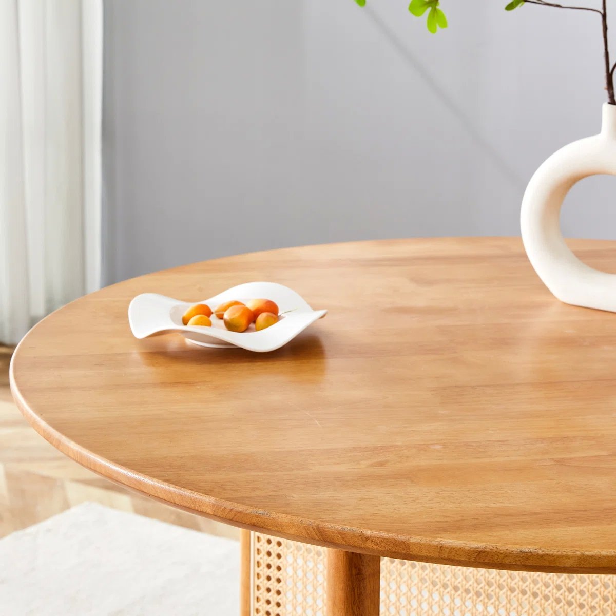 Solid Wood Round Cane Dining Table – Natural Finish Wooden Dining Table for Home