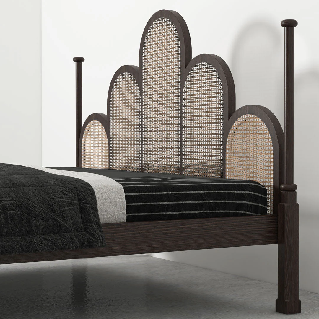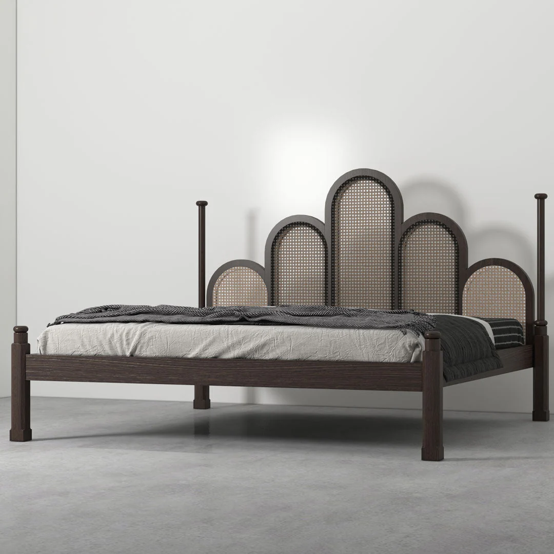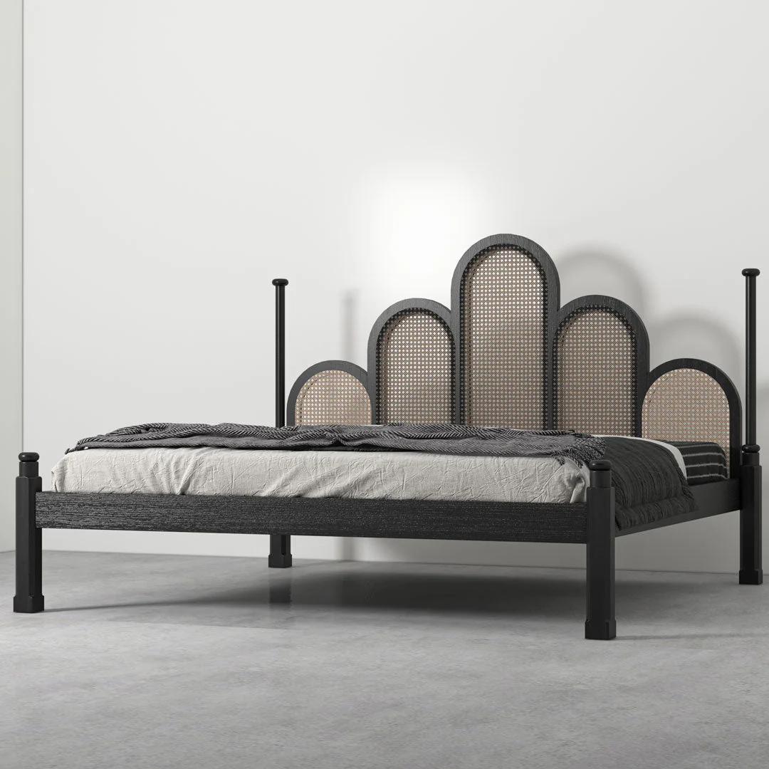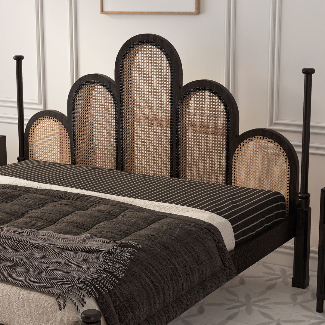 Teak Wood Cane Bed Black Finish | Luxury Solid Wood Bed