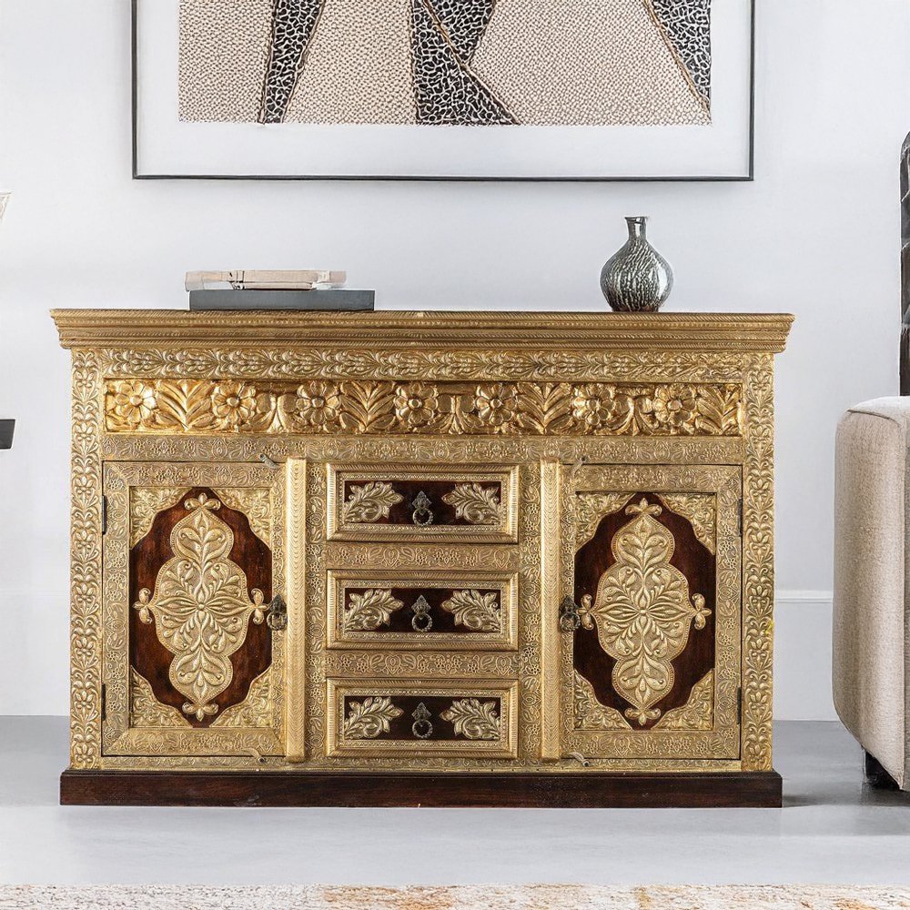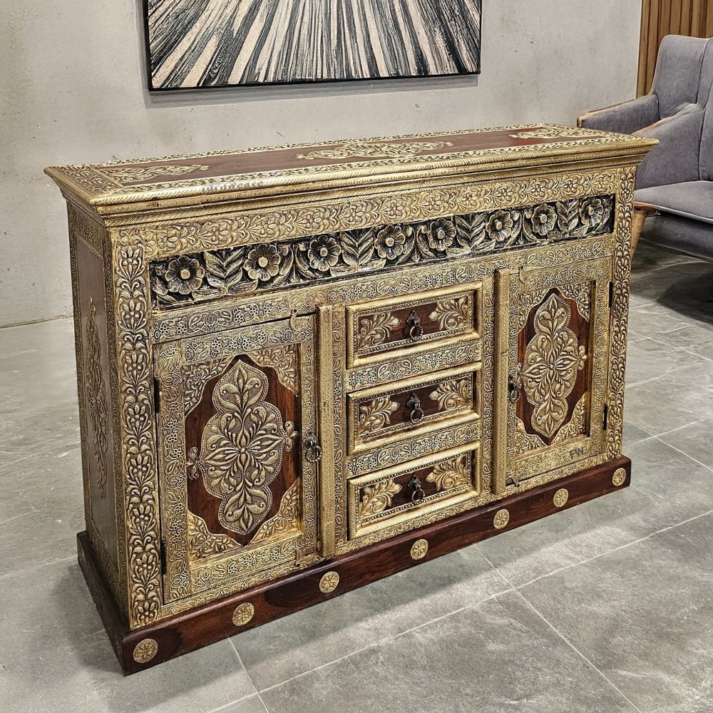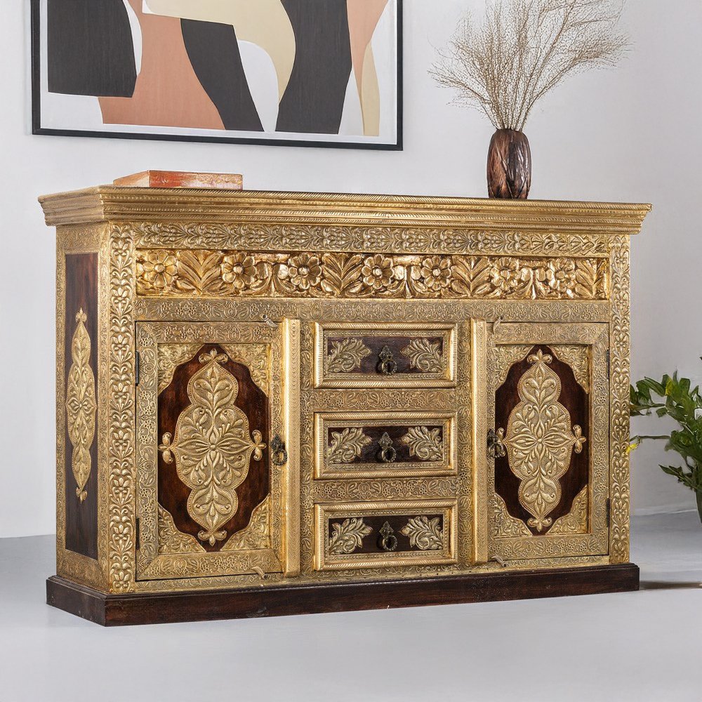 Teak Wooden Brass Fitted Sideboard – Handcrafted Luxury