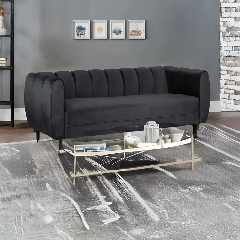 Valencia Black Fabric Upholstered Sofa – 3-Seater