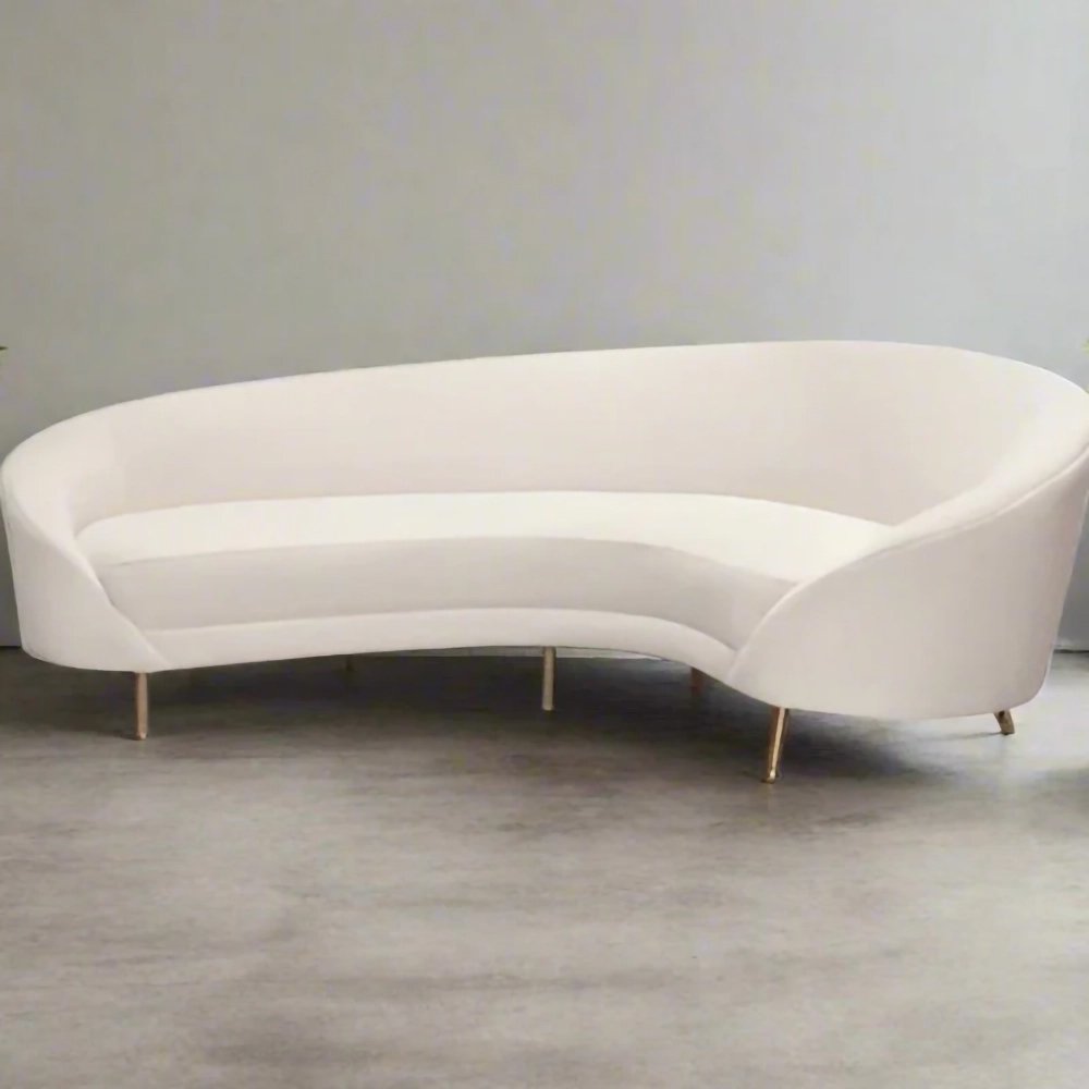 Add effortless elegance to your living space with the Velora Curve Sofa by Art of Rajasthan. Wrapped in luxurious premium velvet, its smooth silhouette and gold metal legs make a bold, modern statement. The plush cushioning offers unmatched comfort, while neutral tones like Ivory, Beige, and Grey blend beautifully into any décor.