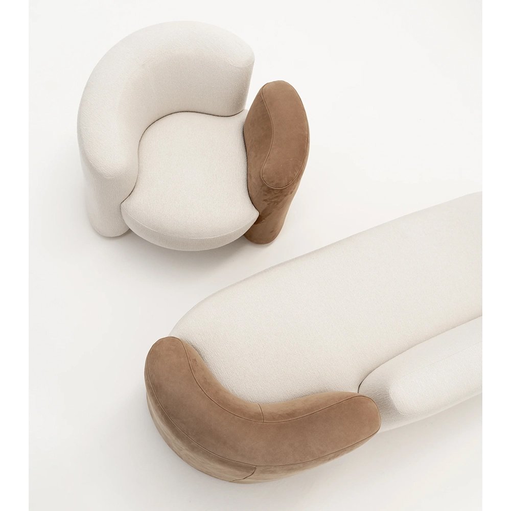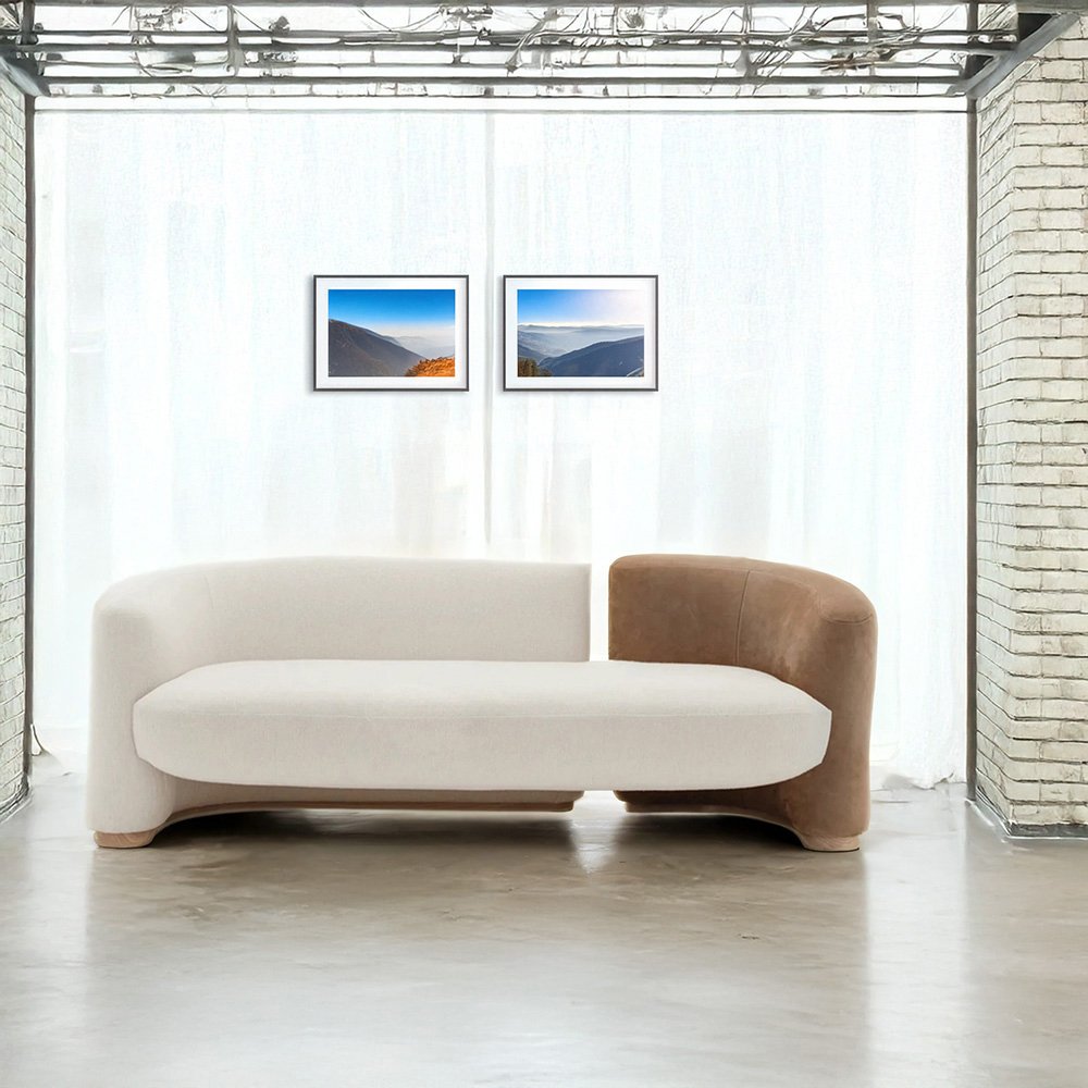 Velvra Curved Bouclé & Velvet Upholstered Sofa – 3-Seater