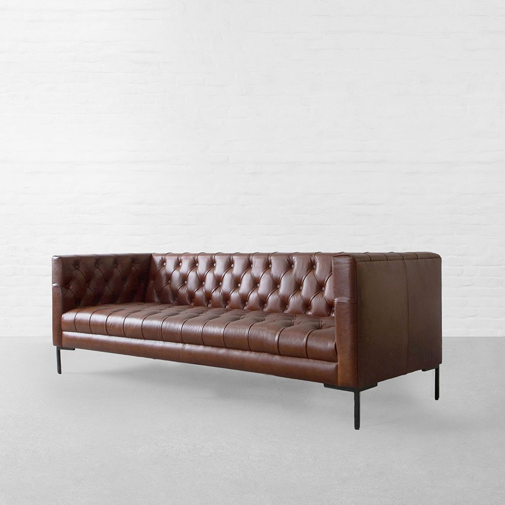 Windsor Chesterfield Tufted Genuine Leather 3-Seater Sofa