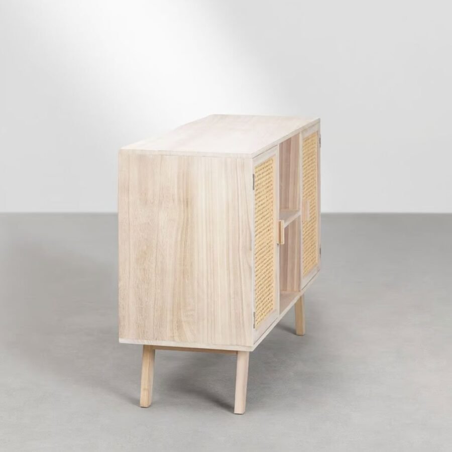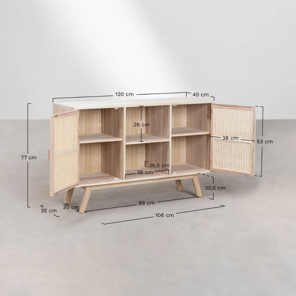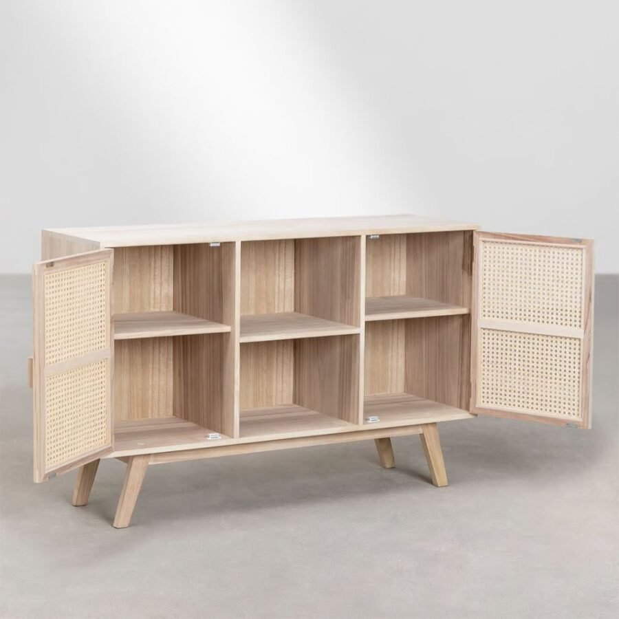 The Ralik Design Wooden Sideboard is made of robust and resistant paulownia wood combined with rattan door finishes. A storage cabinet that will become the most functional and versatile piece of furniture in your home, since you can place it in the room that best suits your needs. Add it to your kitchen, living room, dining room or bedroom and get the trendy vintage look. You can combine it with the rest of the products in the Ralik Design collection and you will surprise your guests.